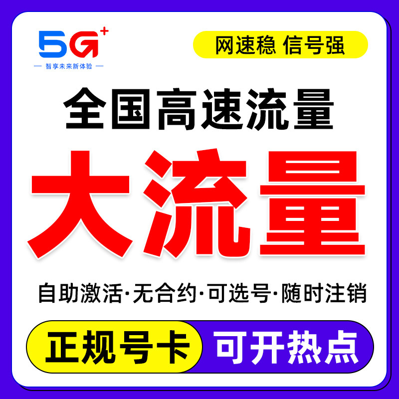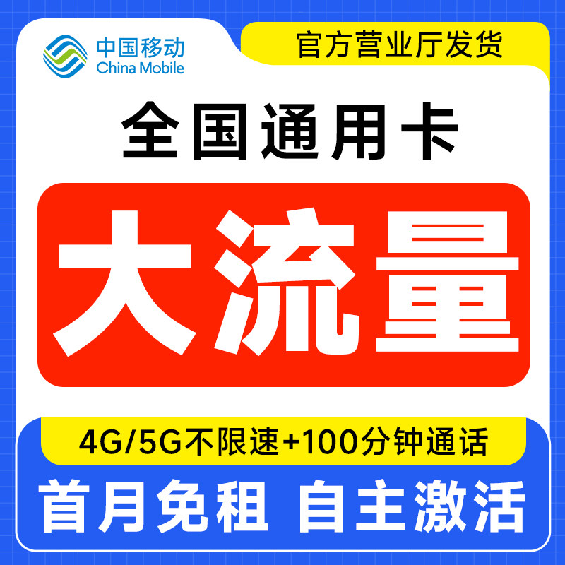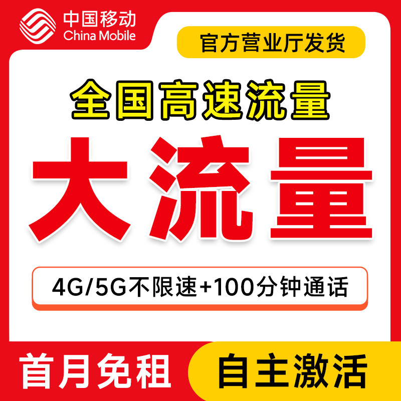 中国移动流量卡纯流量上网卡无线限全国通用5g大流量手机卡电话卡