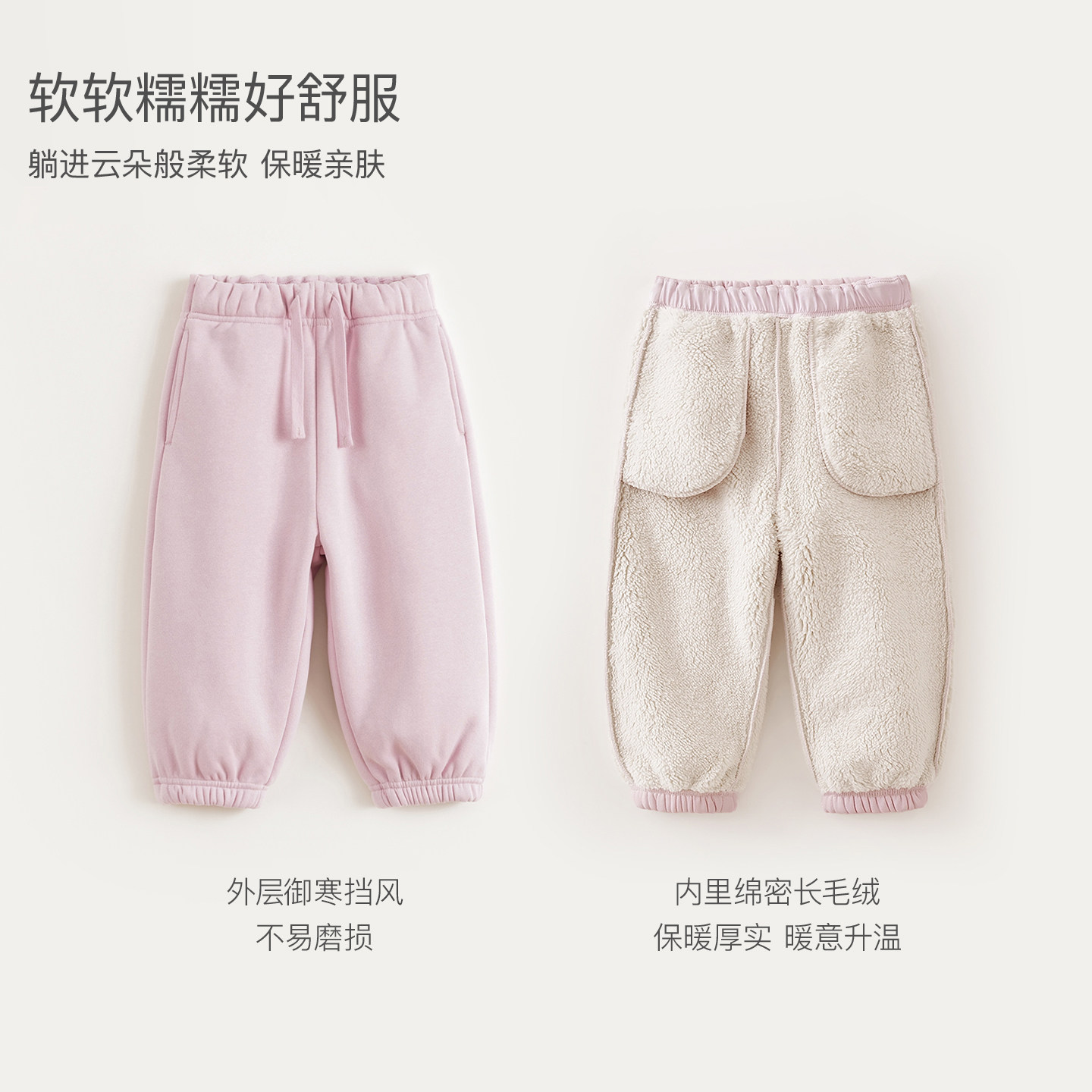 浅色糯米休闲裤 子 女秋冬加绒胖妹妹mm高腰宽松显瘦梨型身材阔腿裤