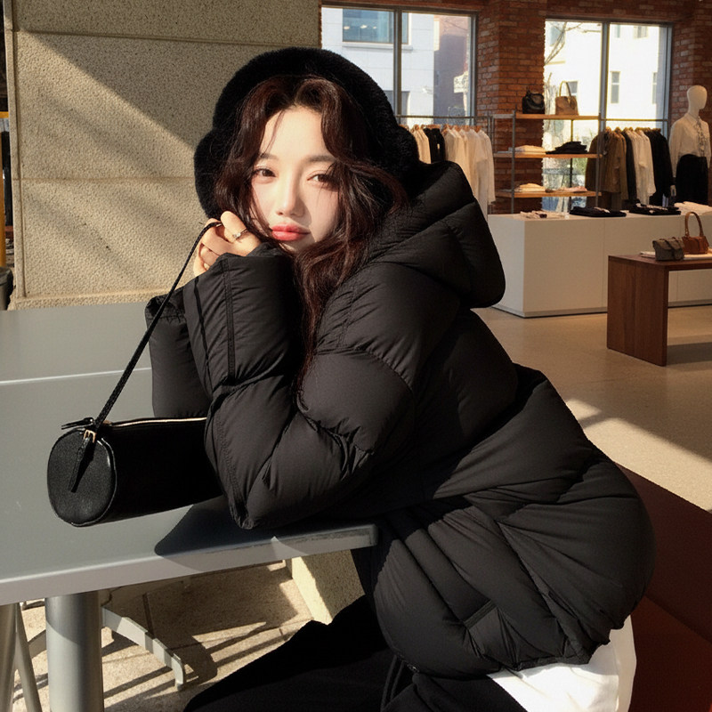 正品 短款 2025新款 爆款 新国标90白鸭绒外出外套黑色连帽 羽绒服女款