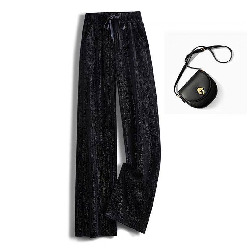 女士 拖地筒裤 2025春秋金丝绒阔腿裤 女高腰垂感显瘦休闲直筒大码