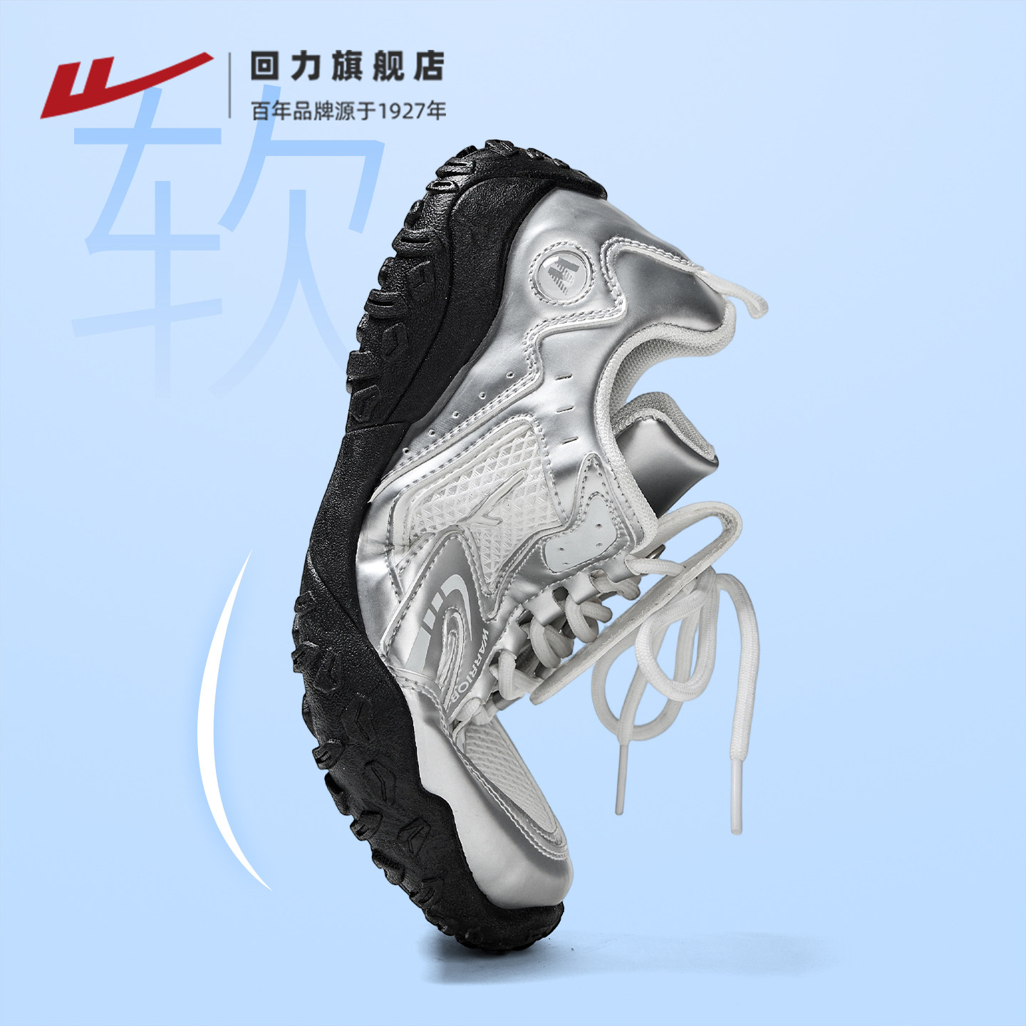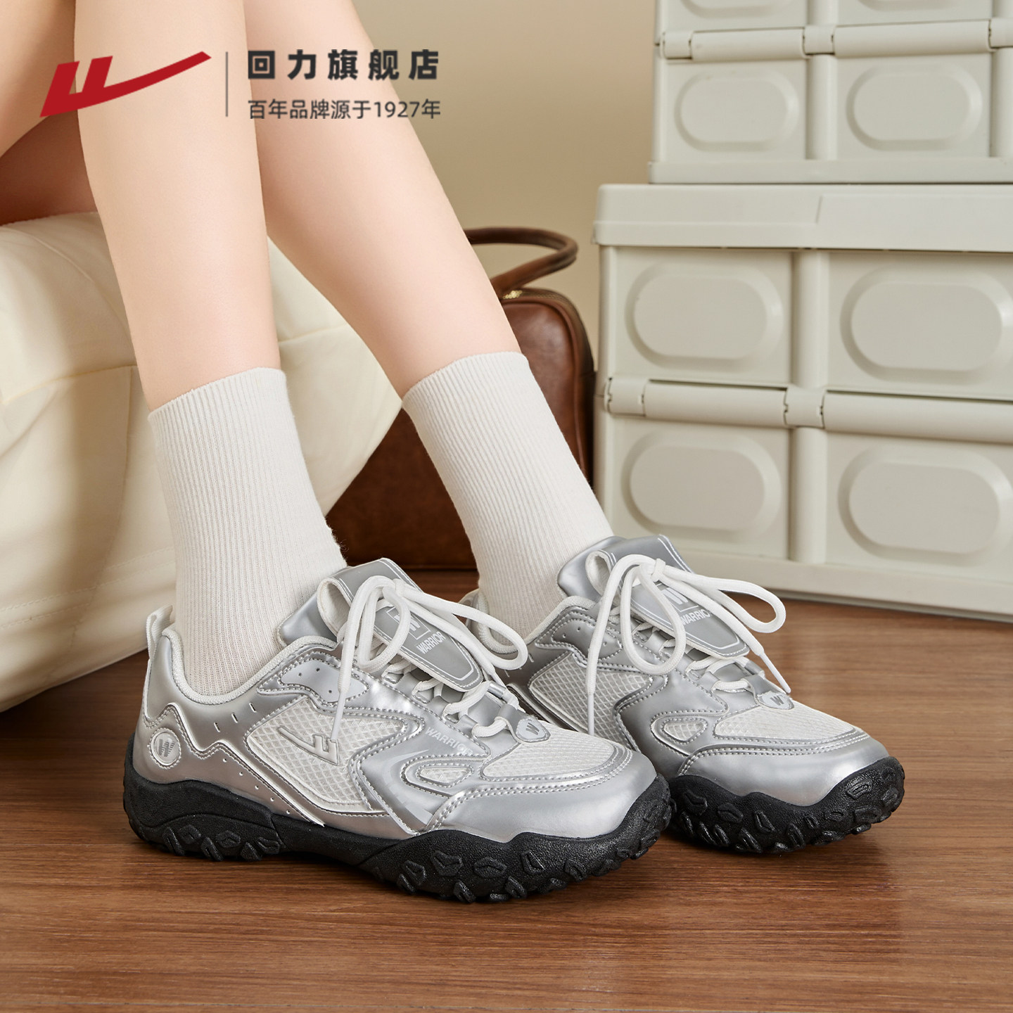女2026春季 复古休闲板鞋 新款 网面透气运动鞋 子 银色女鞋 回力德训鞋