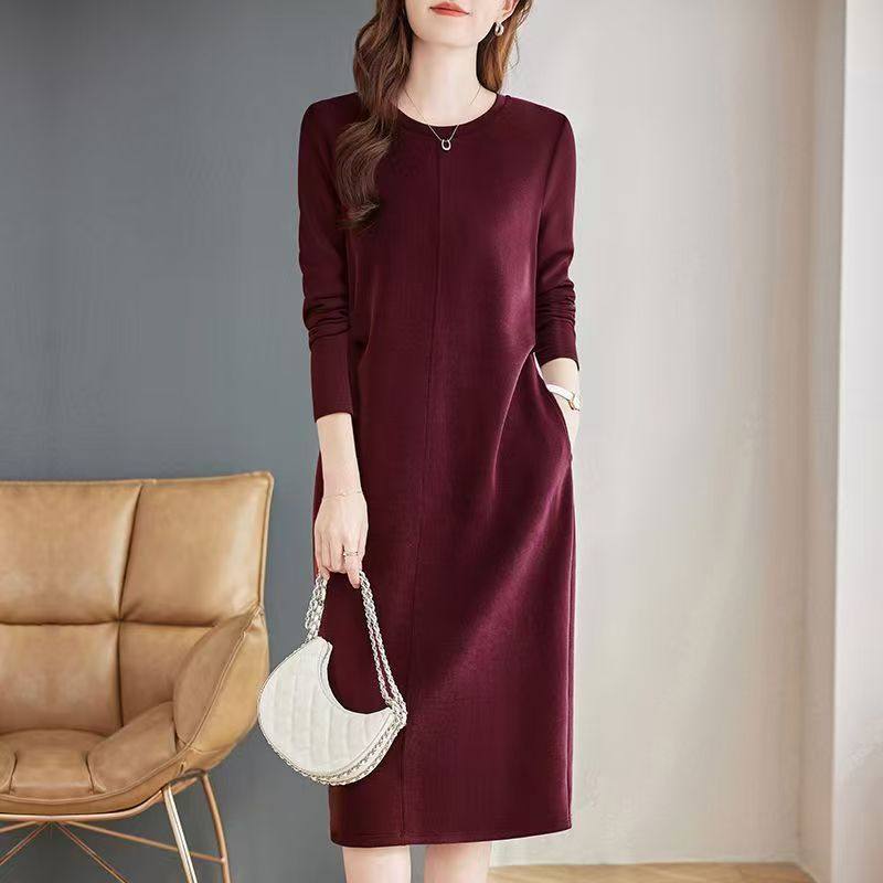 胖mm宽松显瘦直筒中长款 紫色长袖 洋气女装 大码 裙子 连衣裙春秋新款