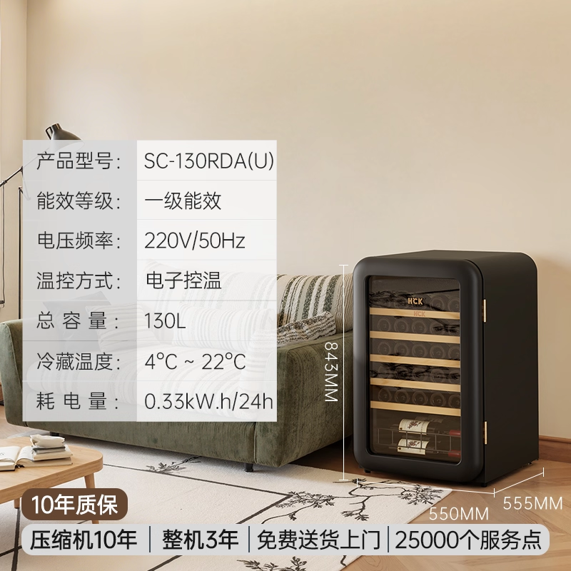 HCK哈士奇复古红酒柜恒温恒湿茶叶家用小型超薄嵌入式 冰吧冰箱2.0