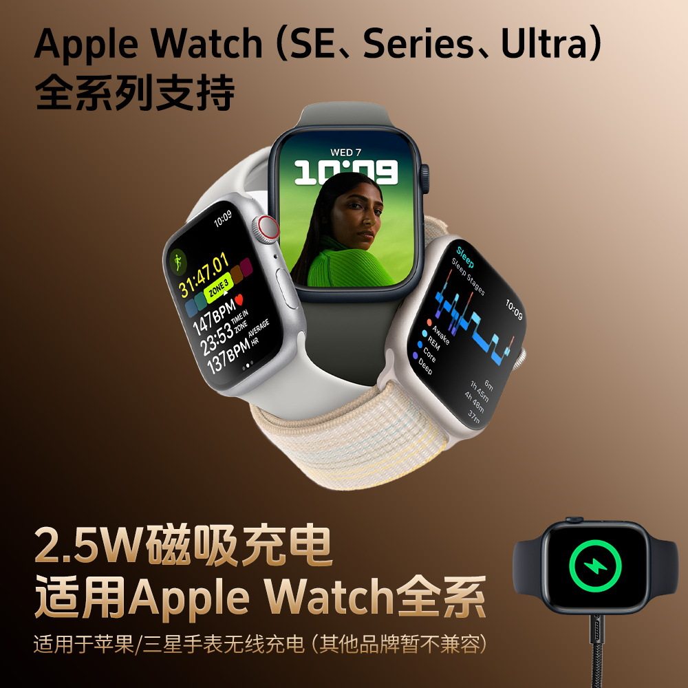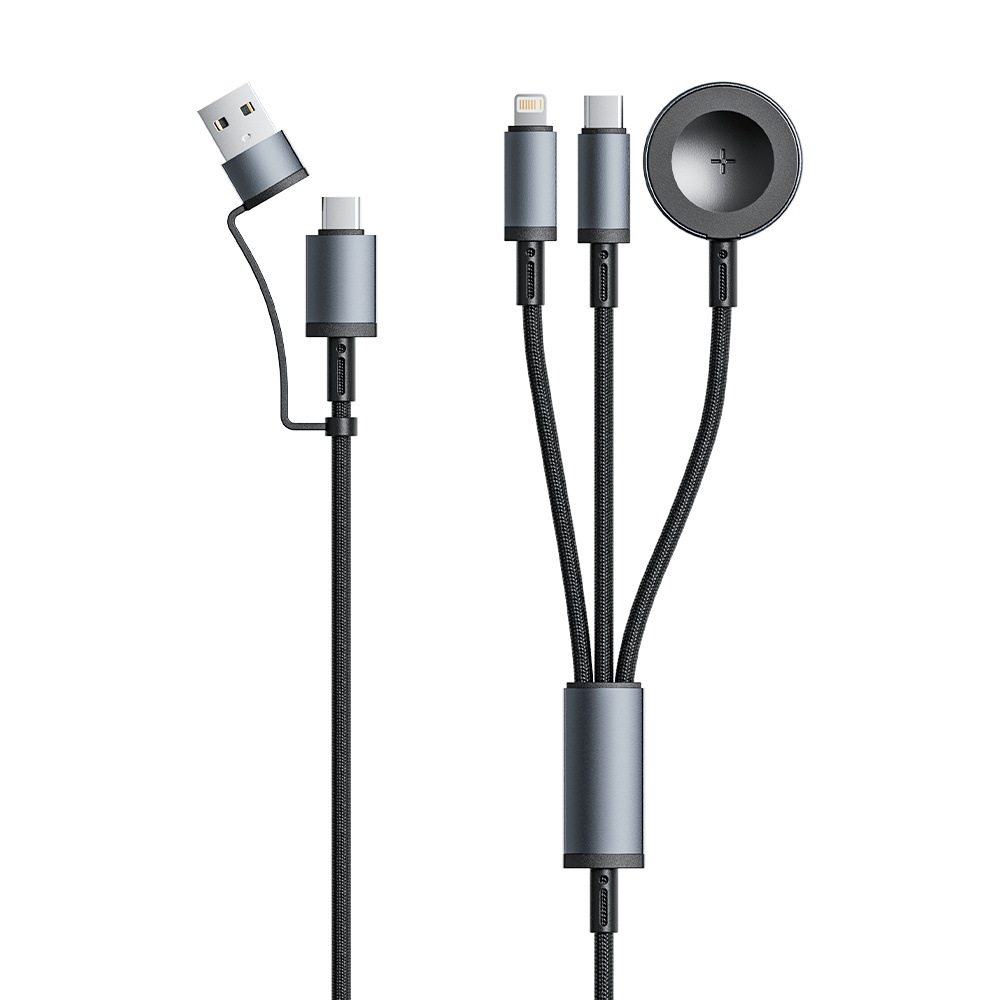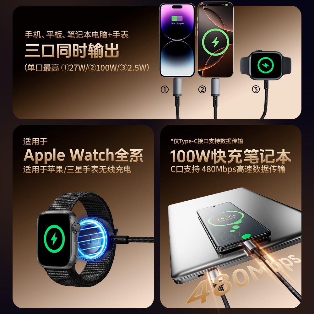 倍魔100W一拖三数据线TypeC转苹果27w 手表磁吸充5w编织快充线适用于苹果iwatch三星手表手机平板 TypeC100w