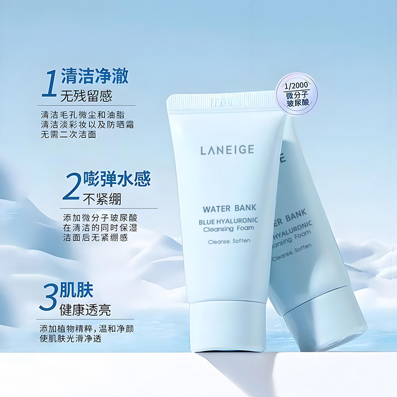 兰芝新水酷透明质酸嘭润洁颜膏30g 5支卸妆清洁二合一中样正品