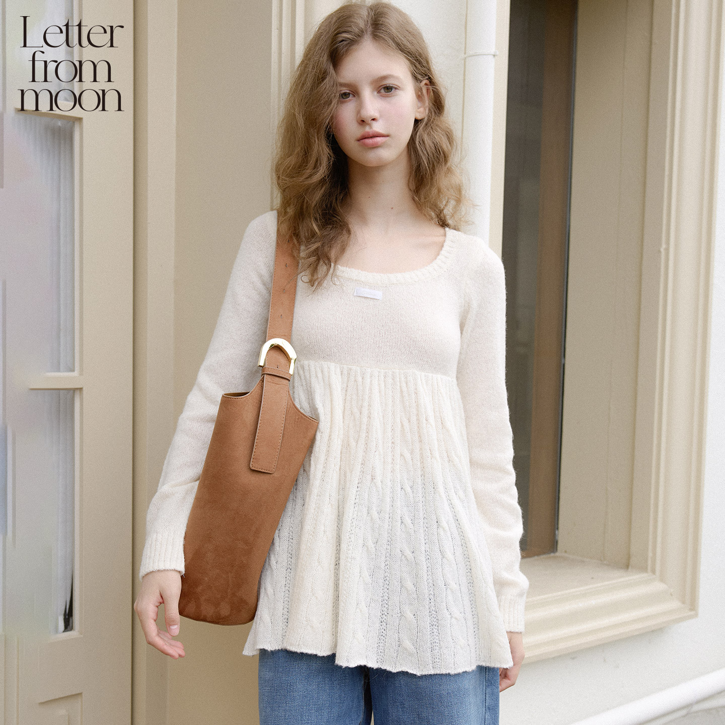 from 中长款 moon2025秋季 方领麻花针织衫 半身裙上衣女 新款 Letter