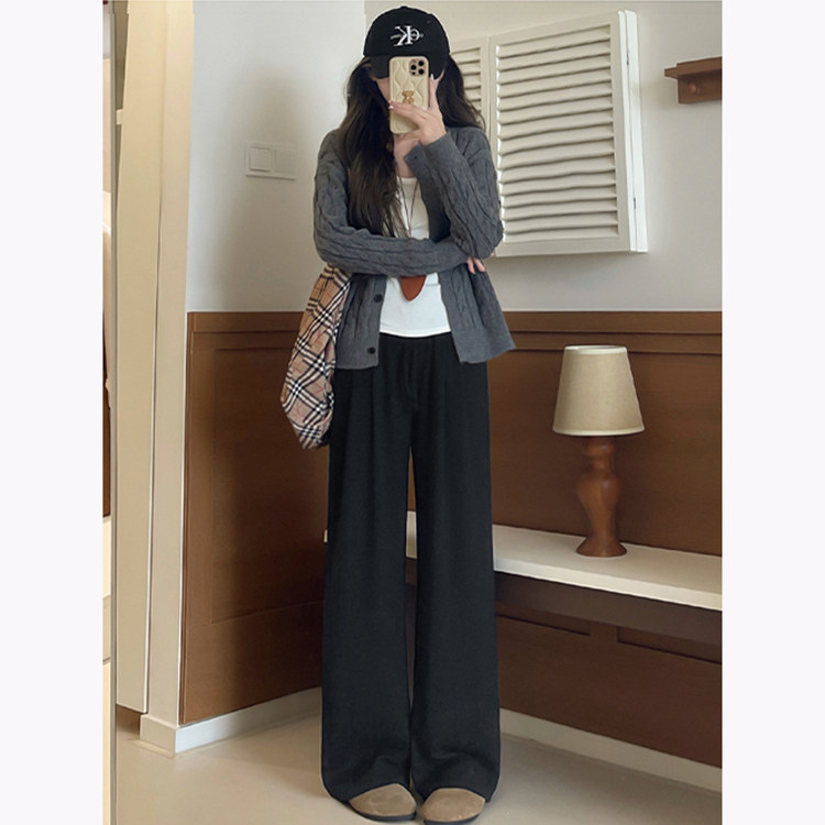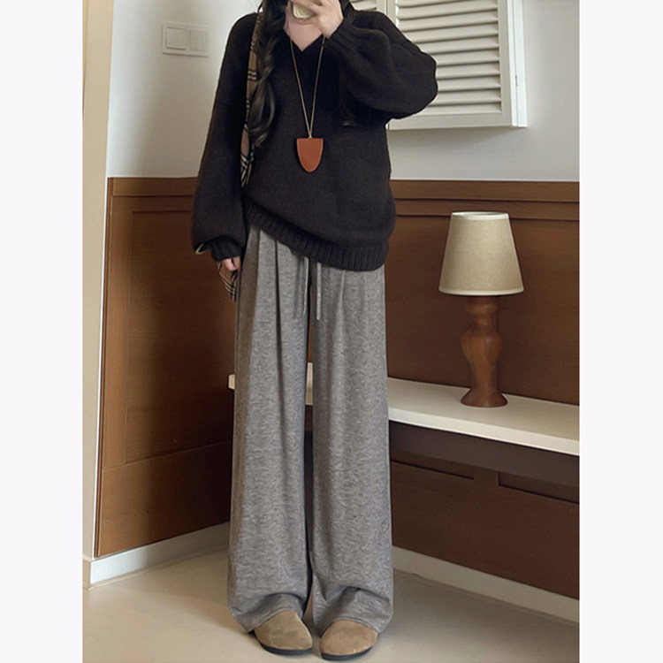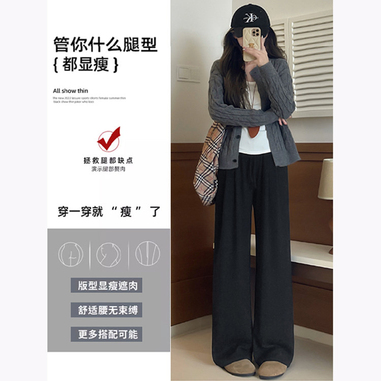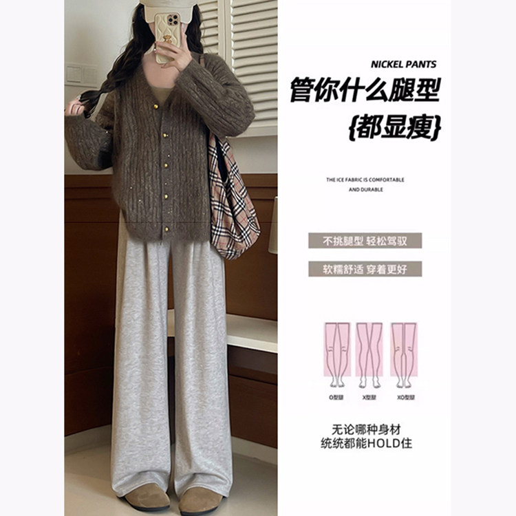 宽松休闲垂感显瘦拖地裤 韩系慵懒风针织休闲糯米裤 女秋冬2025新款