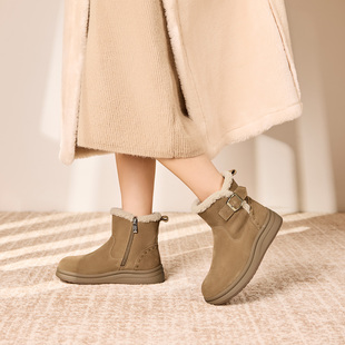 子中筒棉鞋 奥康 雪地靴真皮加绒保暖毛毛勃肯鞋 2025冬季 短靴 女鞋