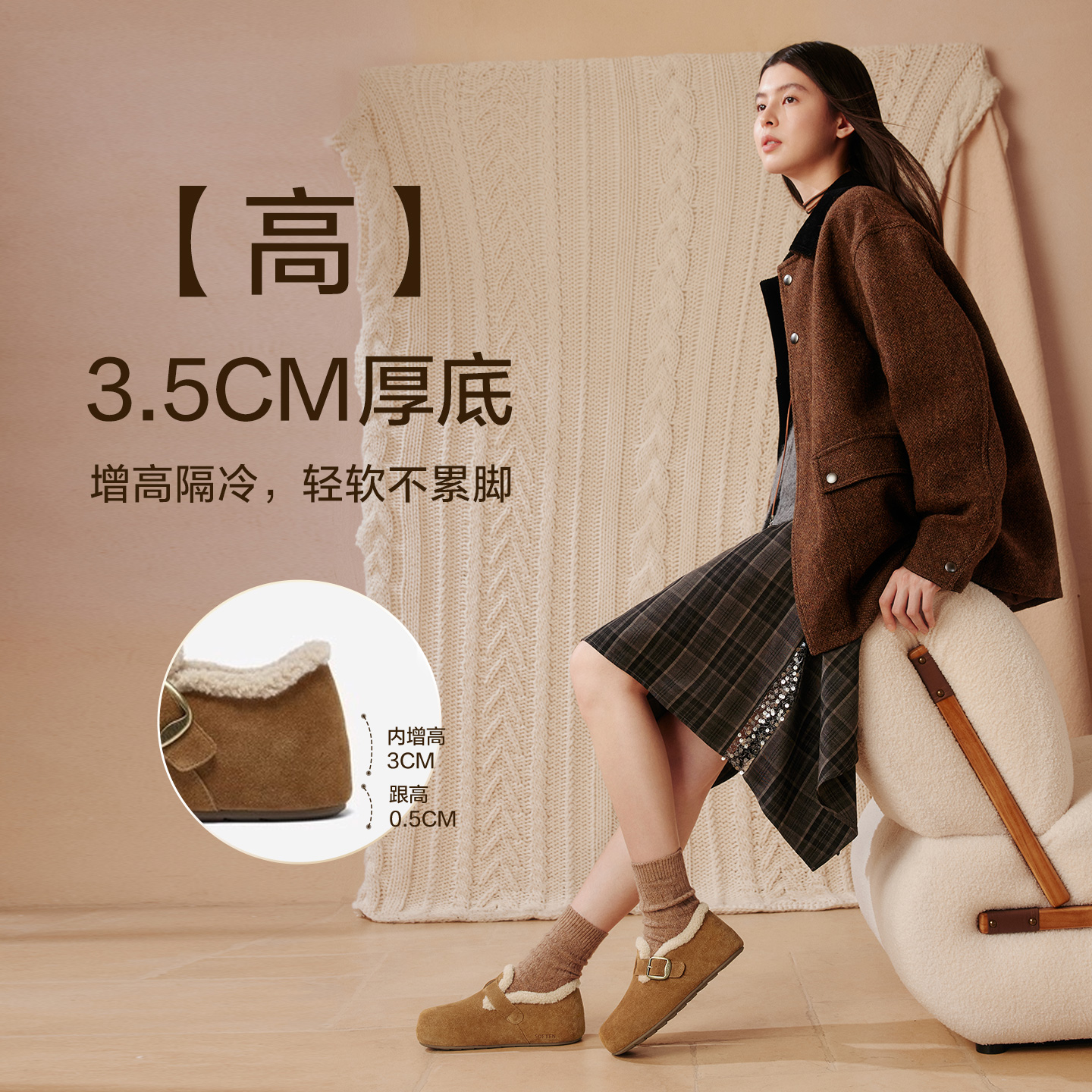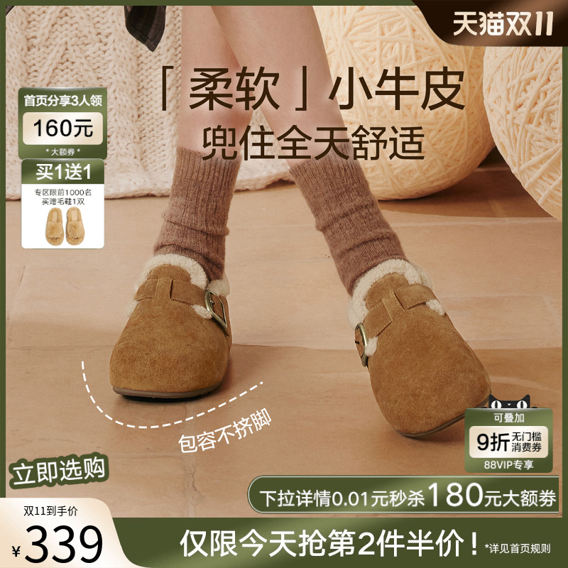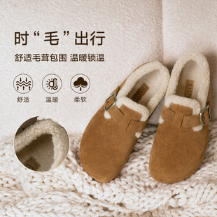 单鞋 百思图2025冬新款 加绒保暖女毛毛鞋 雪地靴棉鞋 B3047DM5 勃肯鞋