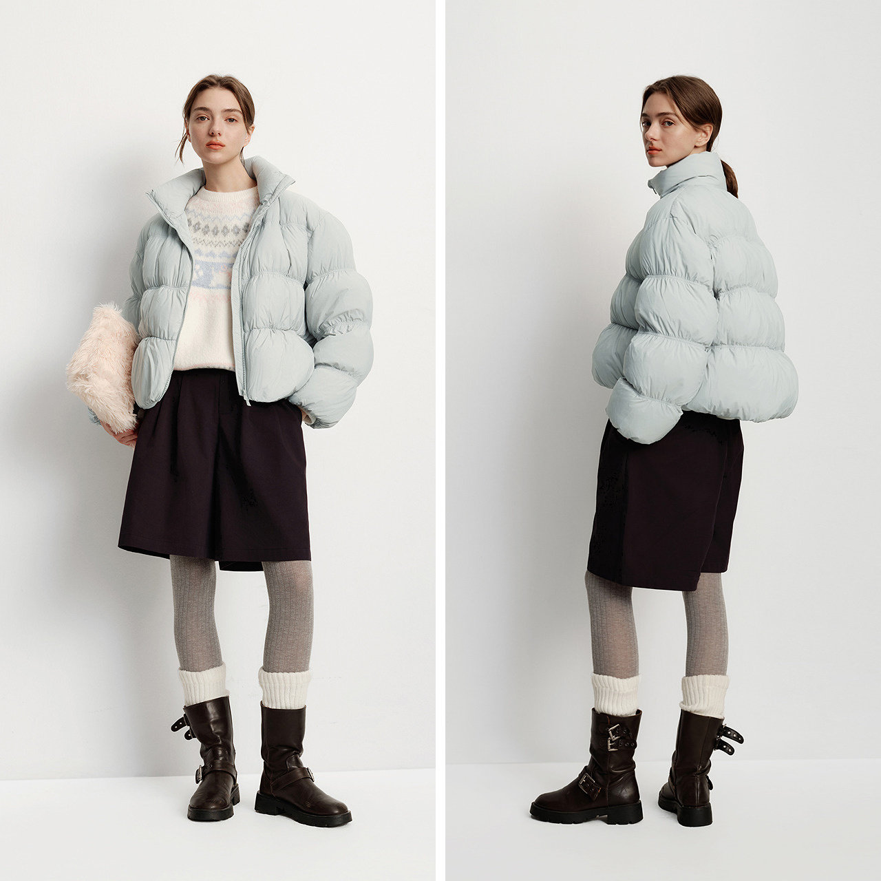 森马羽绒服女冬季 慵懒温柔面包服 90绒子oversize肌理立领2025新款