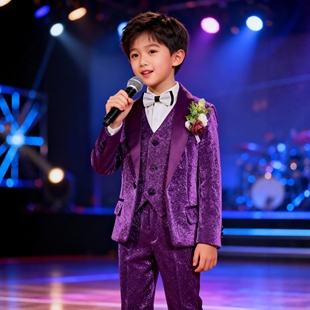 男童紫色亮片西服套装 帅气 晚会小主持人礼服钢琴演出儿童走秀西装