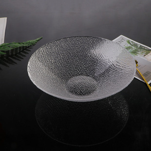 日式 透明麦纹玻璃碗创意家用大号水果碗高颜值蔬菜沙拉碗餐具