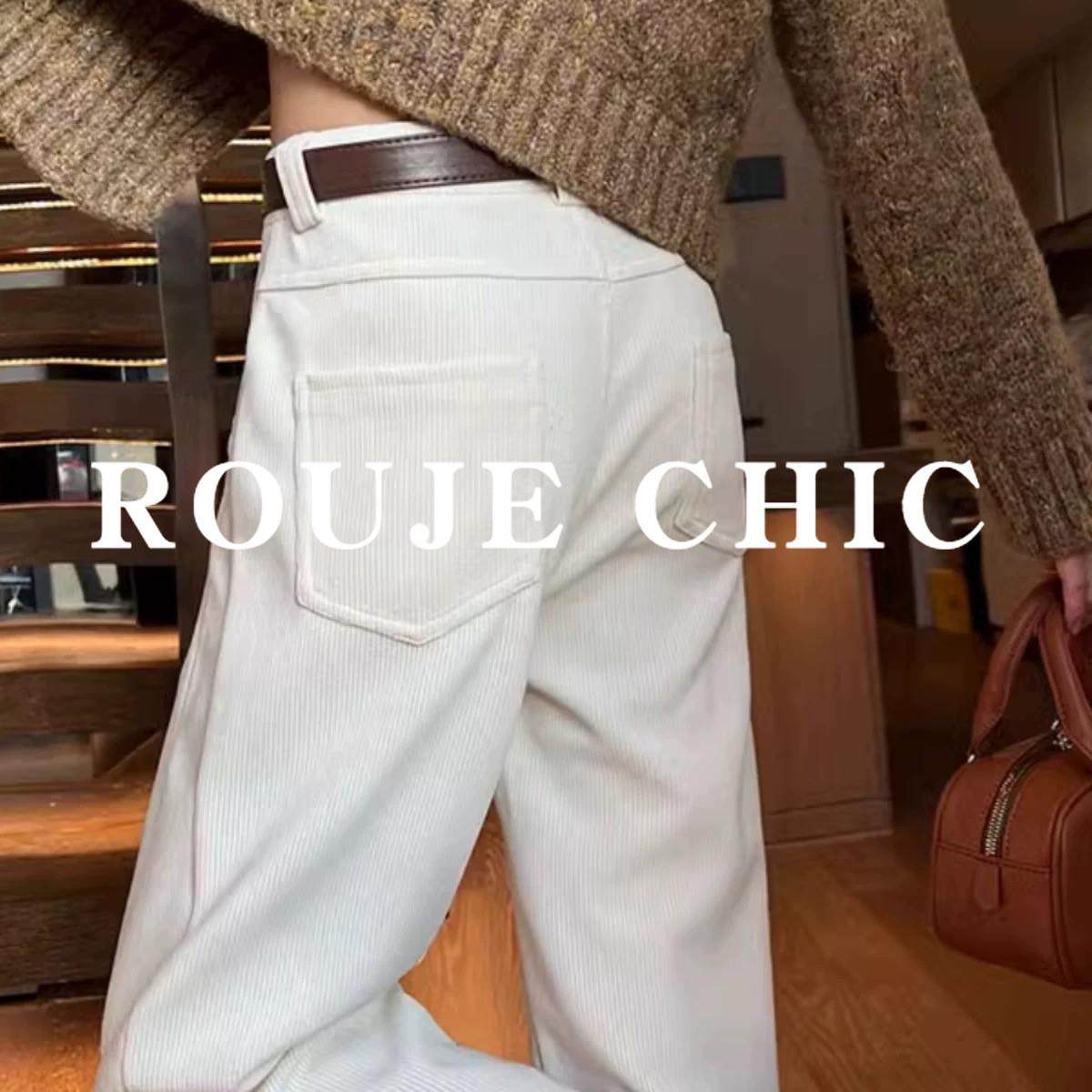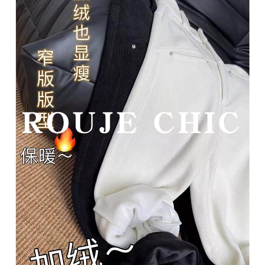 显瘦梨形身材垂感直筒裤 加绒胖mm宽松大码 子 女冬季 条纹阔腿休闲裤
