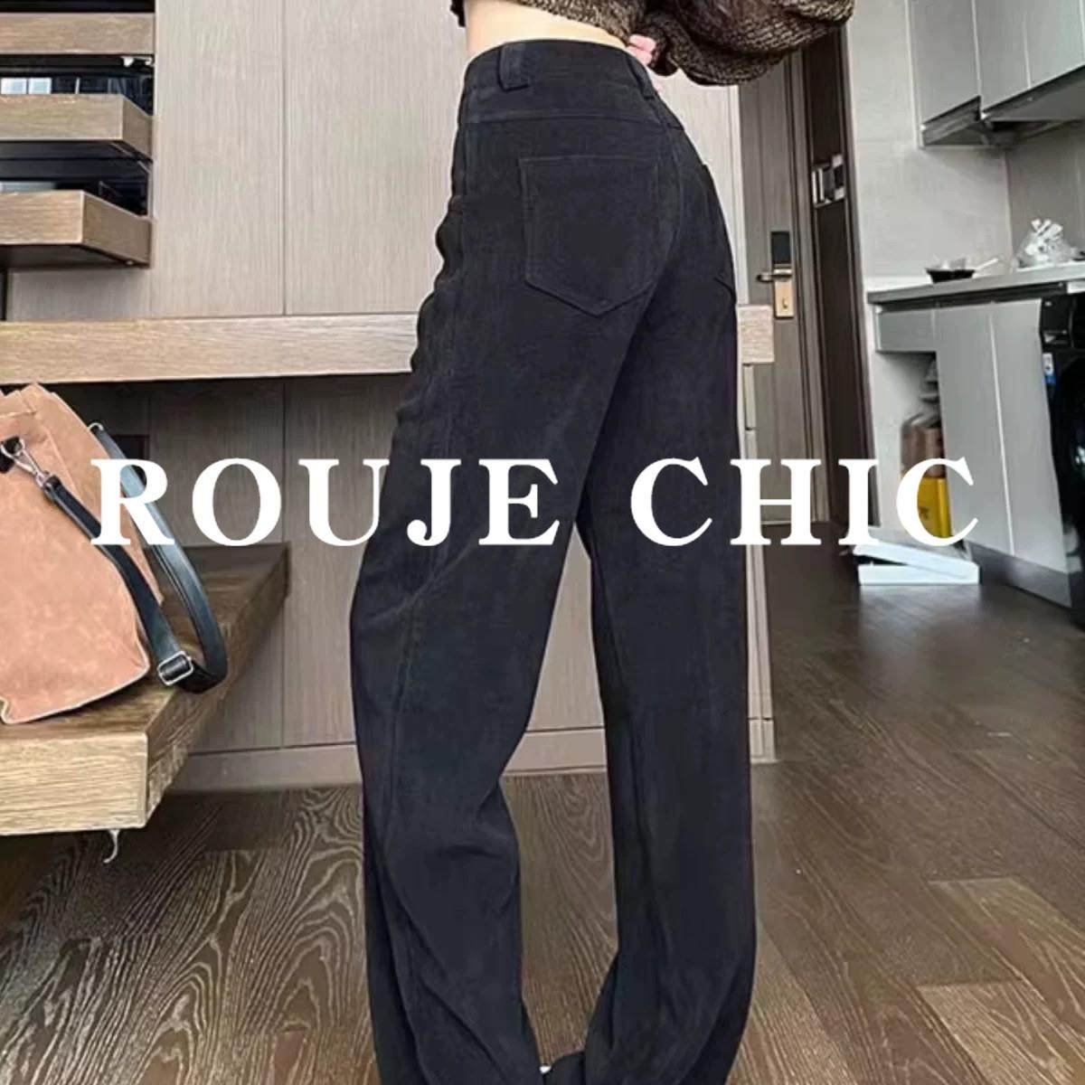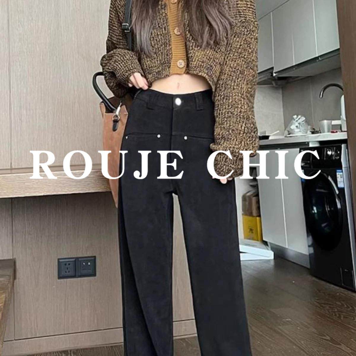 女装 梨形加厚裤 2025秋冬加绒牛仔裤 复古阔腿女裤 子 女美式 胖mm大码