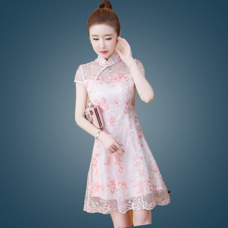 女装 旗袍年轻版 中国风小个子蕾丝款 连衣裙少女改良2020年新款 夏装