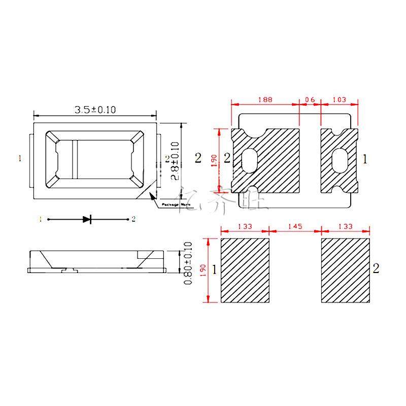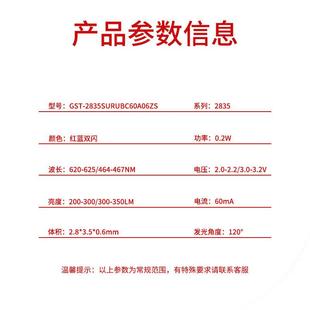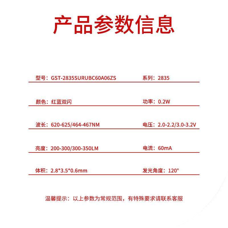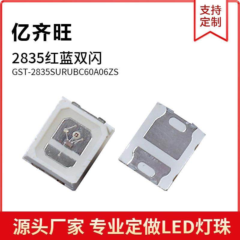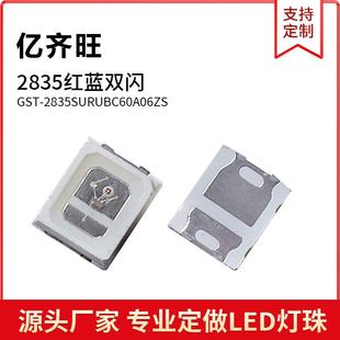 2835红蓝双闪贴片LED灯珠发光二极管0.2W60MA5V铜支架直销