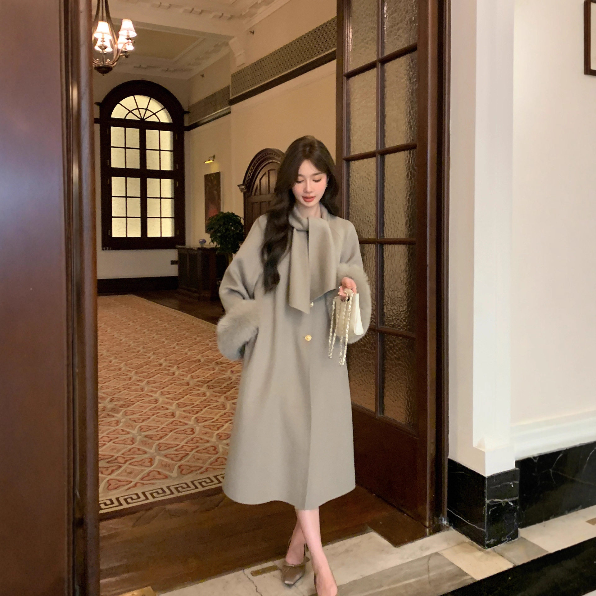 慵懒风双面羊毛大衣女中长款 灰色毛呢外套高级感