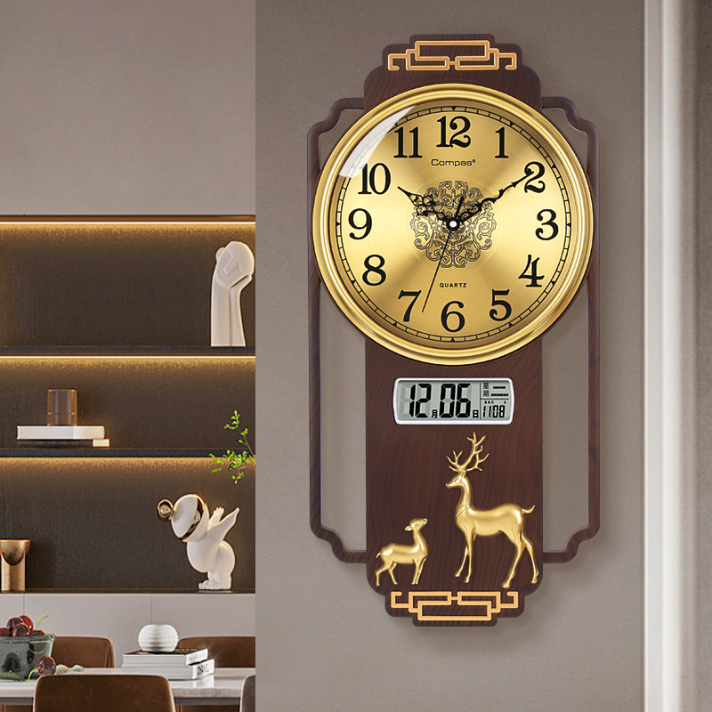 家用钟表挂钟客厅新中式 饰时钟挂表 创意现代简约石英钟静音复古装