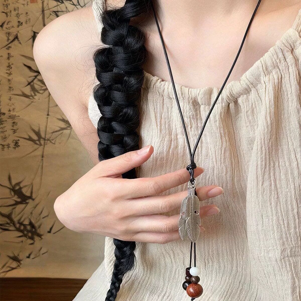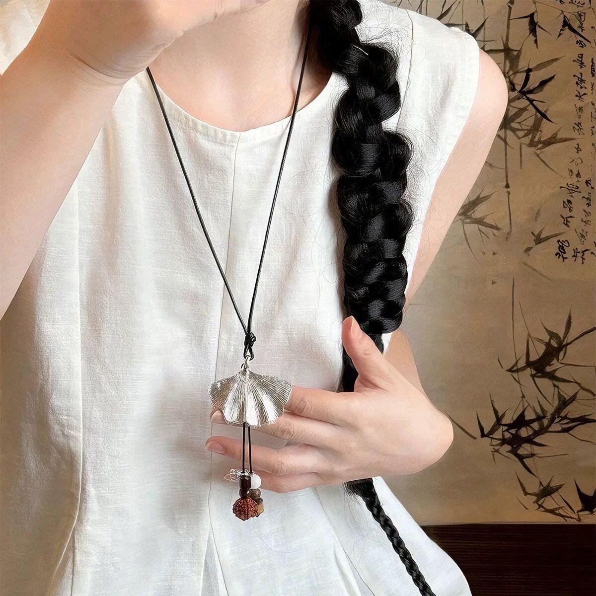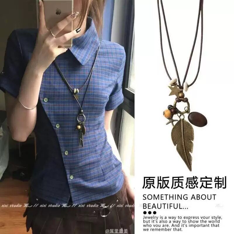 颈链朋克复古颈饰 韩国小众设计感银色树叶项链长款 蜜蜂欢乐社