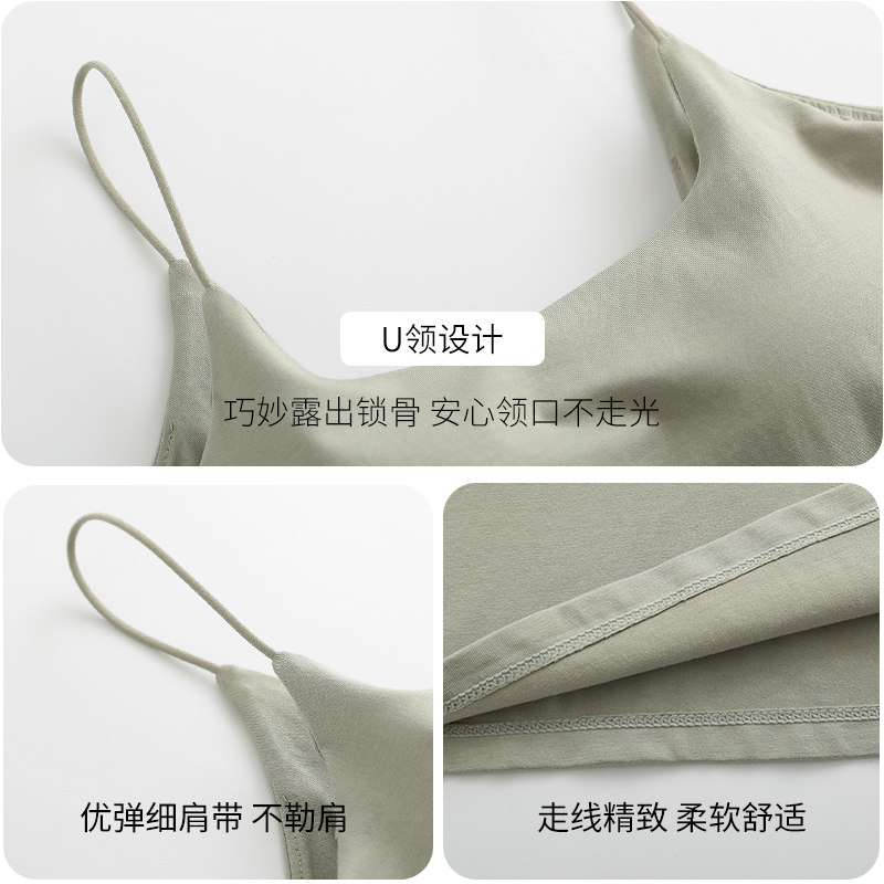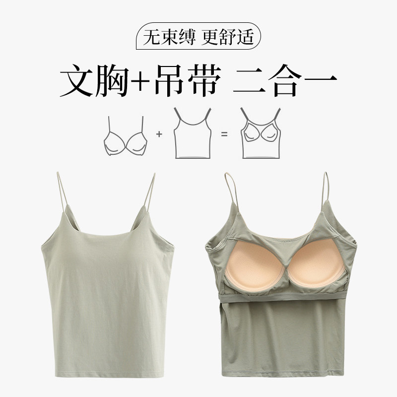 美背吊带背心女内搭带胸垫文胸一体式 外穿上衣 白色u型打底夏薄款