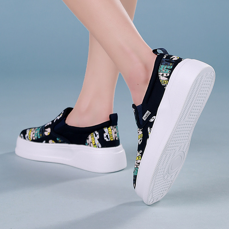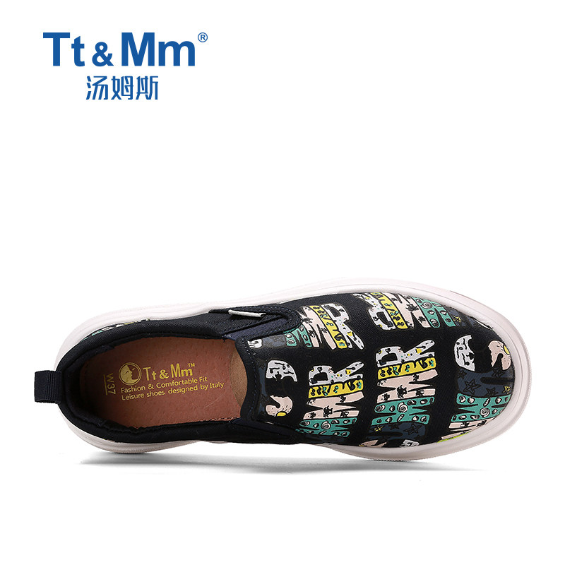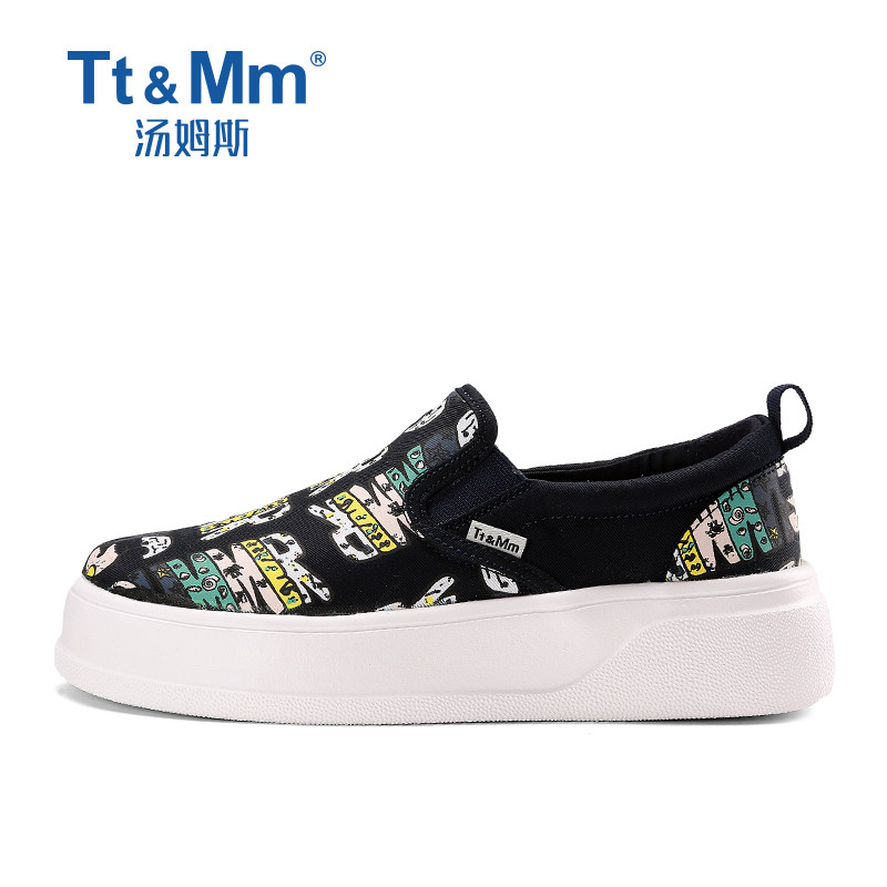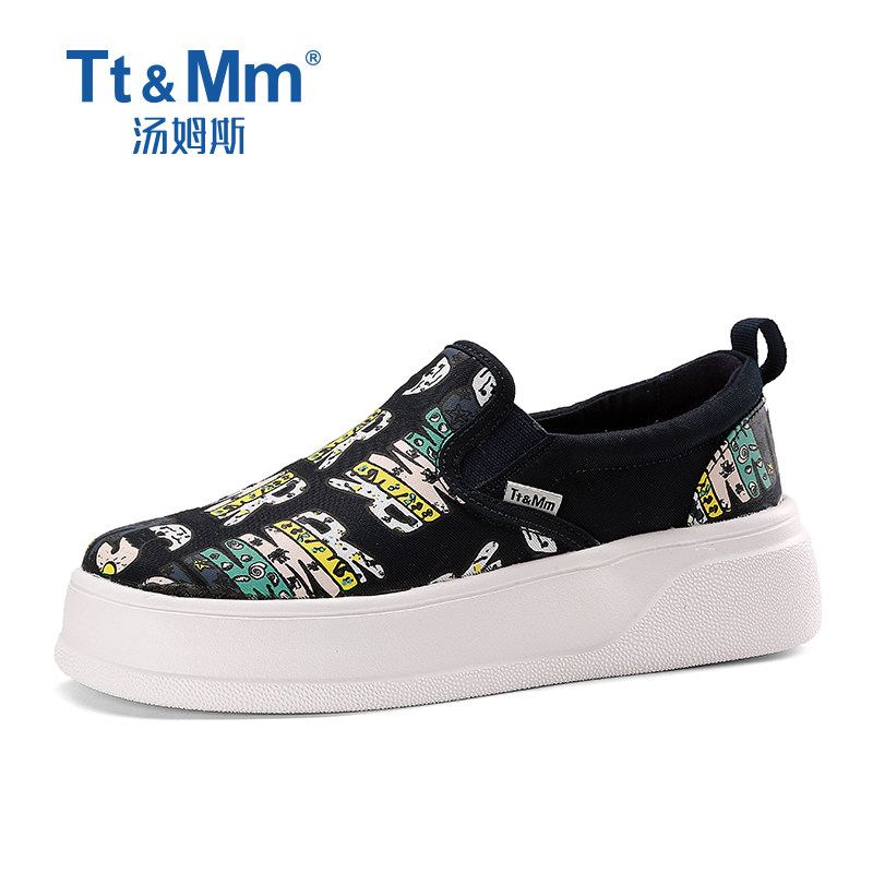 汤姆斯女鞋 休闲厚底百搭一脚蹬松糕跟乐福鞋 春季 帆布鞋 新款 Tt&Mm