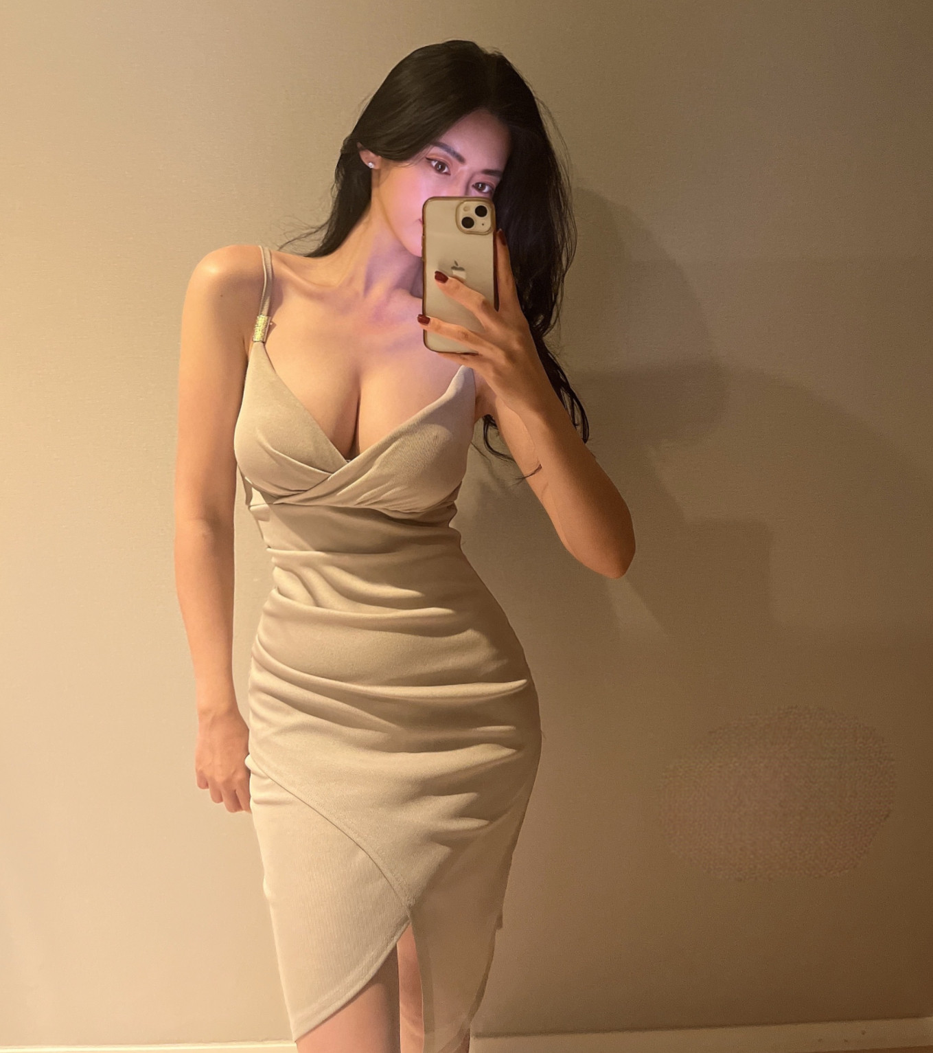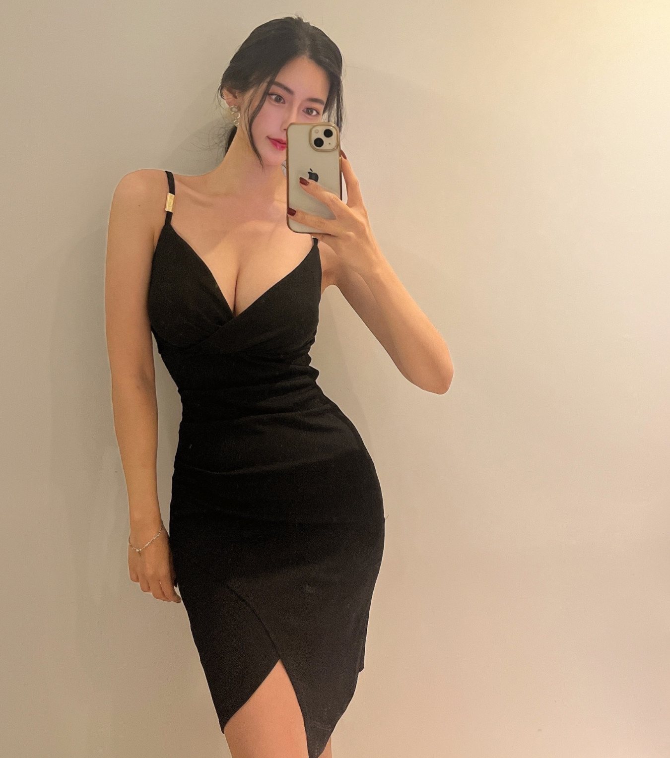 性感V领不规则吊带连衣裙显身材包臀紧身 东大门新款 现货 韩国代购