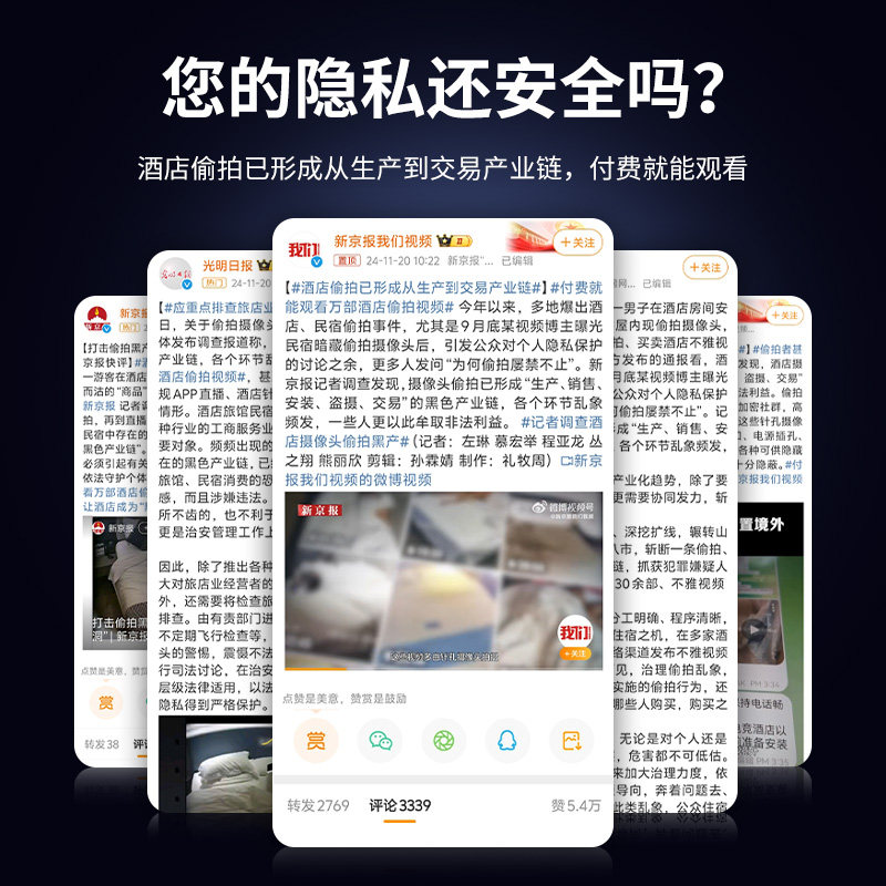 摄像头智能探测仪防偷拍反窃听红外防窥神器GPS酒店防偷摄探测器