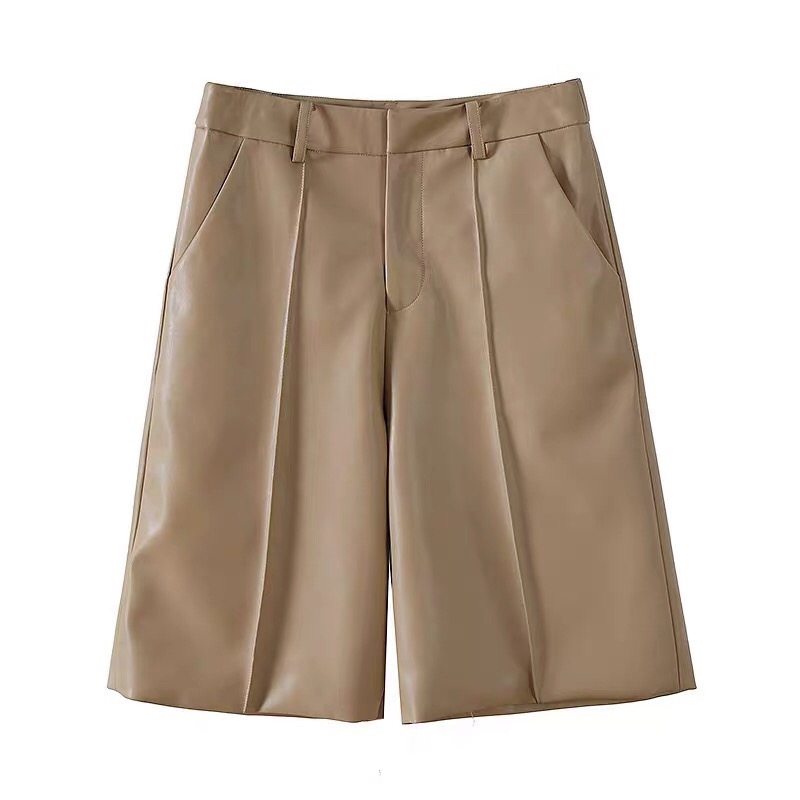 百搭宽松五分绵羊皮裤 欧洲通勤简约常规站女中腰纯皮小脚裤 秋新款