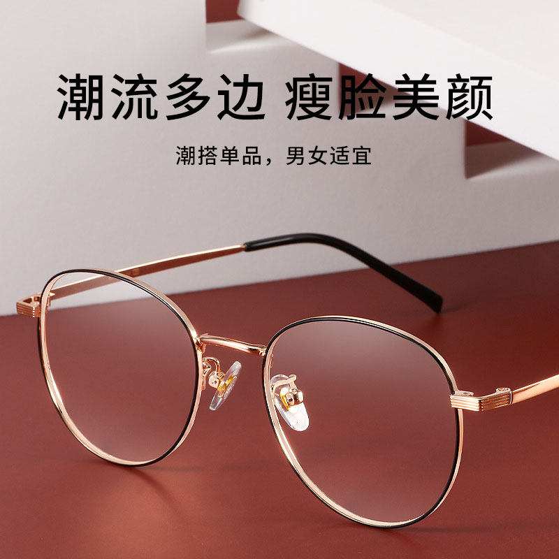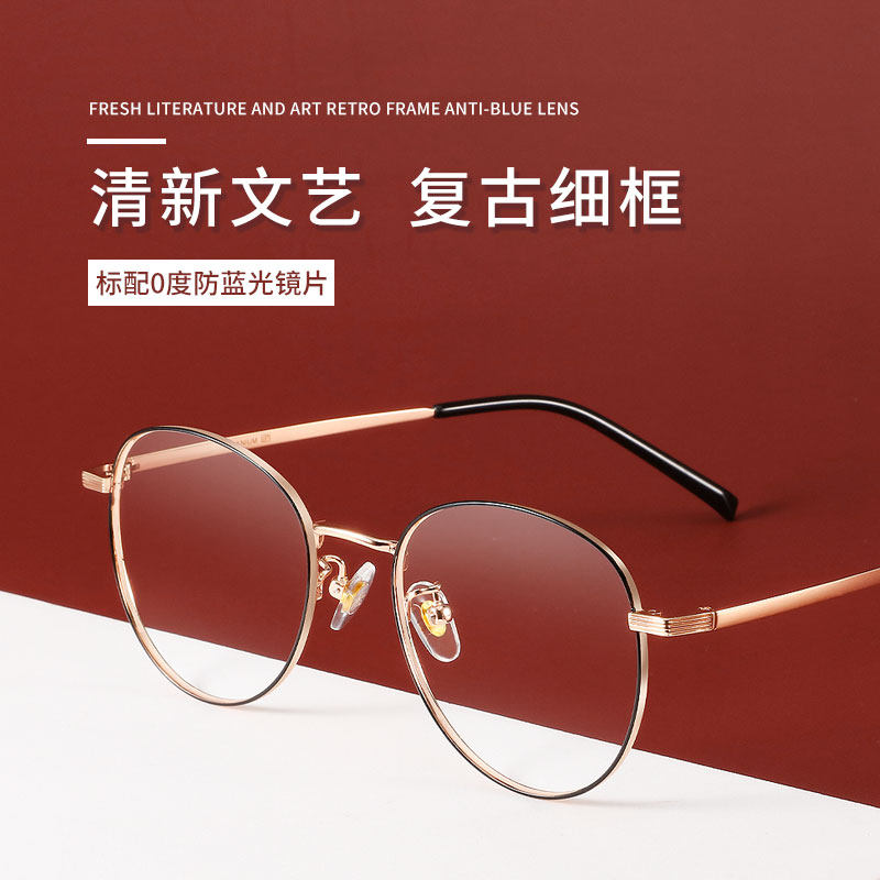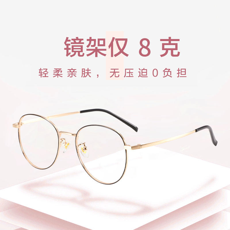 抗防蓝光辐射眼镜女款 近视可配度数金丝纯钛眼镜框疲劳护眼平光镜