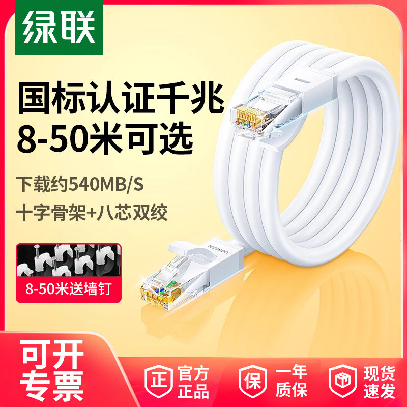 绿联网线千兆超六6类10家用扁平走线15长30带水晶头成品8 50米