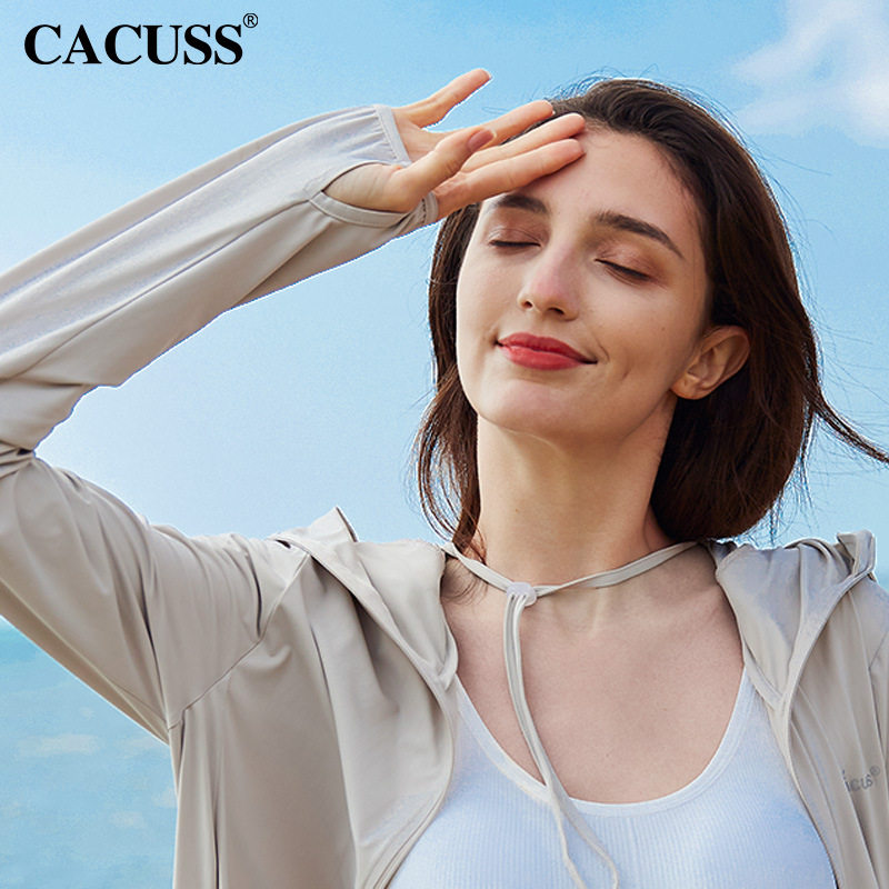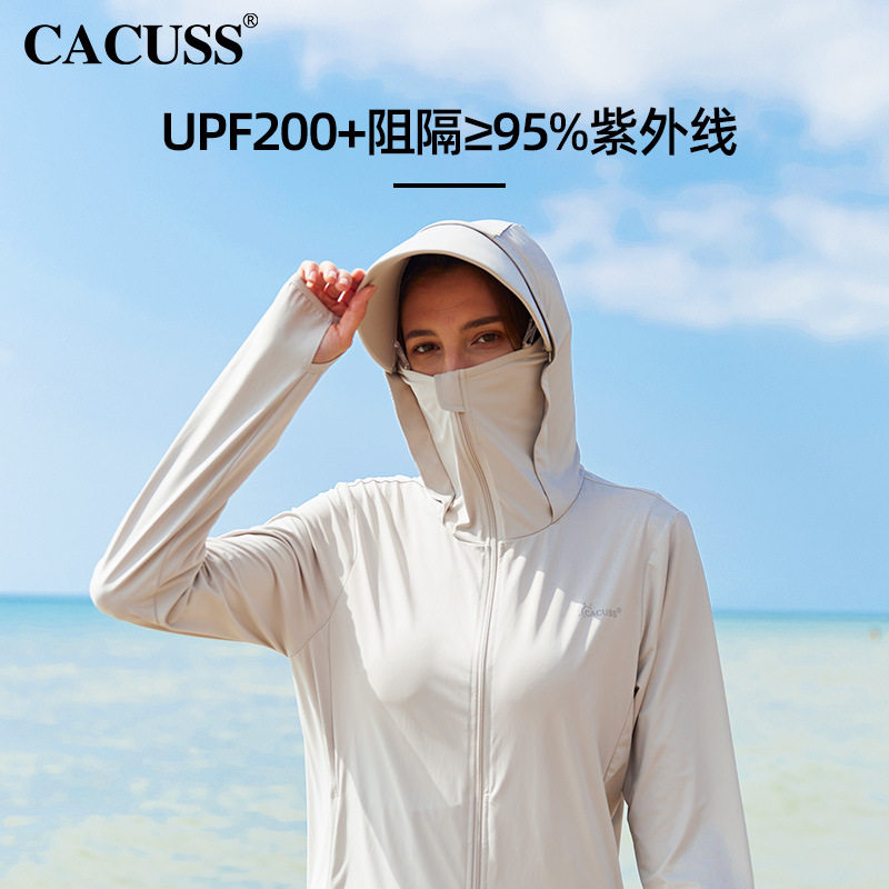 纯色皮肤衣冰爽户外 连帽防紫外线女款 CACUSS正品 防晒衣UPF200新款