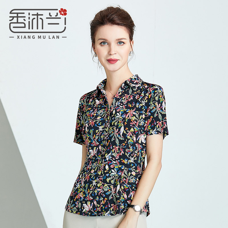 商场同款 女针织碎花简约显瘦大码 夏季 衬衫 胖mm衬衣 短袖 香沐兰