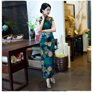 雾璃|冬季 日常旗袍连衣裙 加厚夹棉古法全开襟平裁曳地旗袍长袖