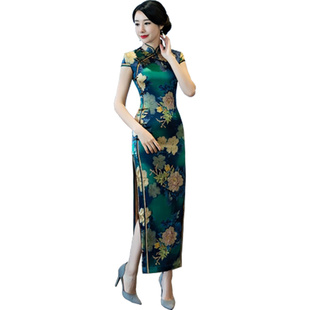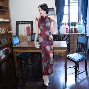酒店开业礼仪迎宾旗袍女大红色长款 中国风复古颁奖礼服合唱演出服