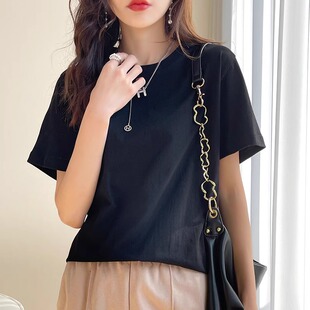 宽松圆领体恤纯色打底体恤上衣潮 2026男女装 纯棉短袖 t恤女春夏季
