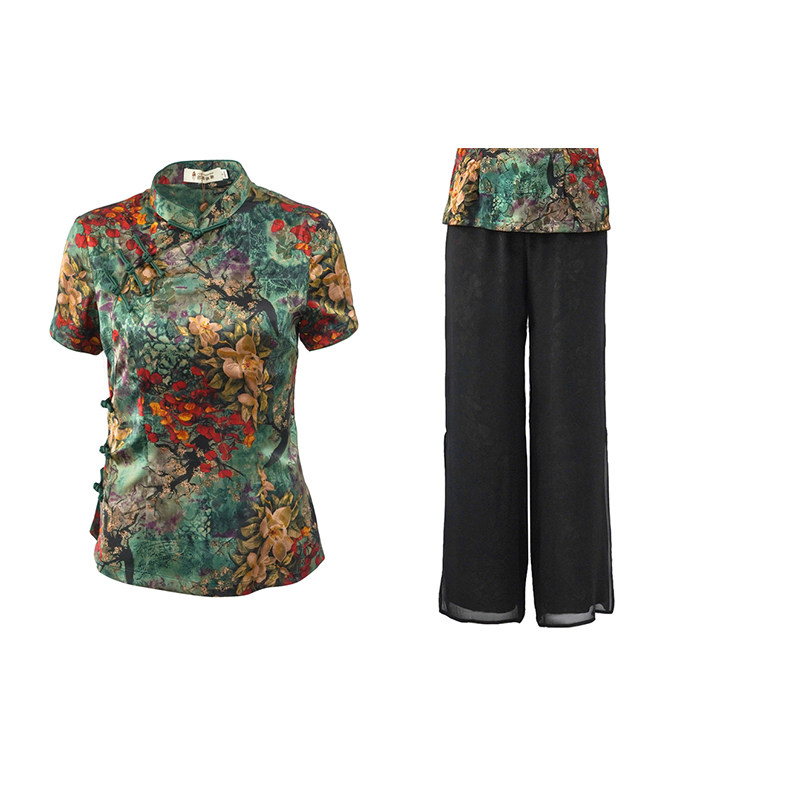 套装 新中式 女休闲修腰显瘦复古洋气搭配两件套24J241 新款 筠雅夏季