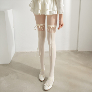 甜美蝴蝶结白丝袜JK洛丽塔lolita袜子女打底裤 袜 交叉绑带白色连裤