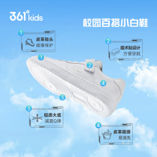 儿童板鞋 皮面防水白色女童运动鞋 春季 男童学生小白鞋 新款 361童鞋