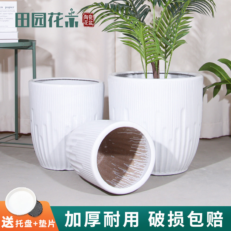 陶瓷大花盆白色简约大号家用客厅落地兰花虎皮兰天堂鸟绿植种树盆