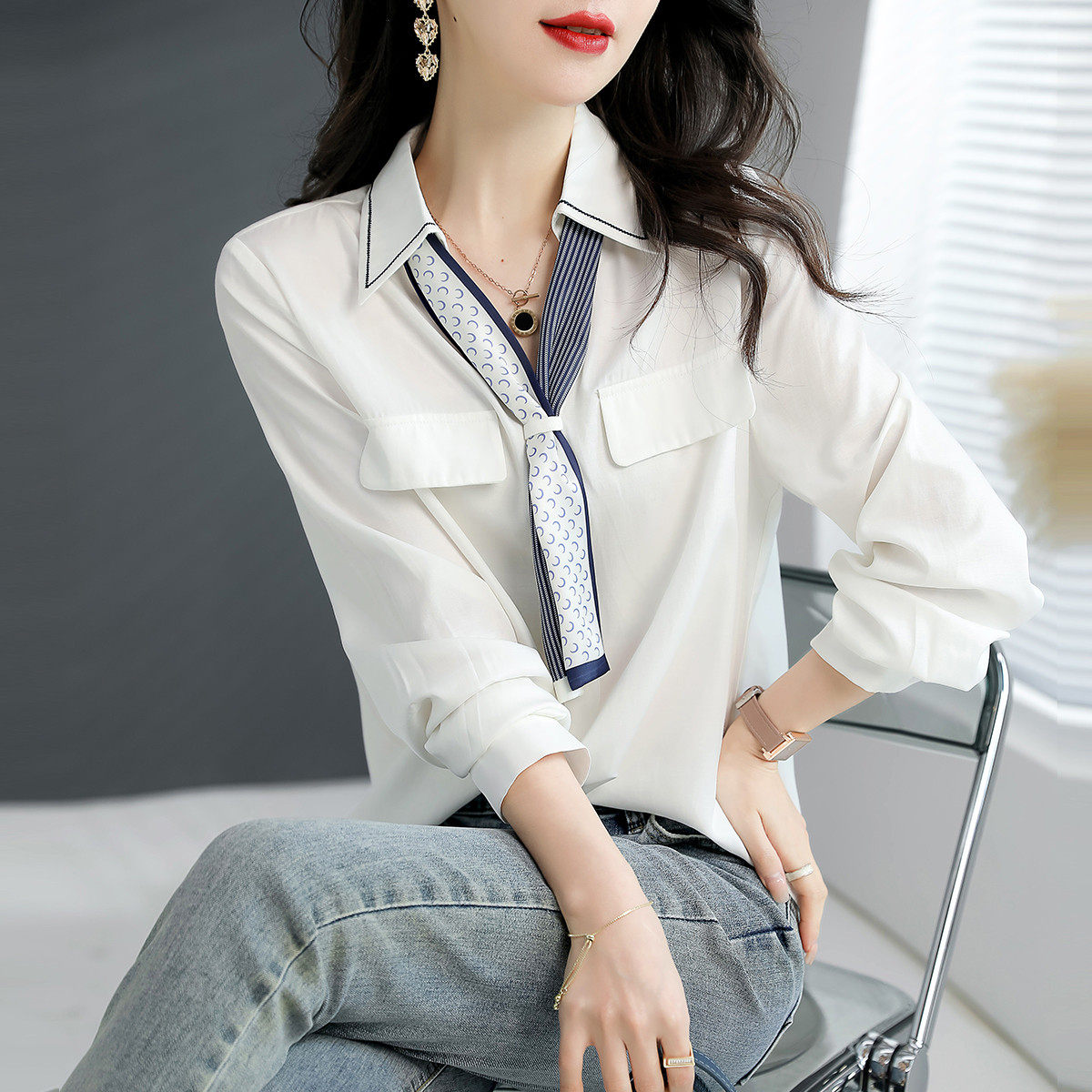 新品 秋季 真维斯复古牛仔衬衫 男女休闲衬衣外套KZ 王一博同款