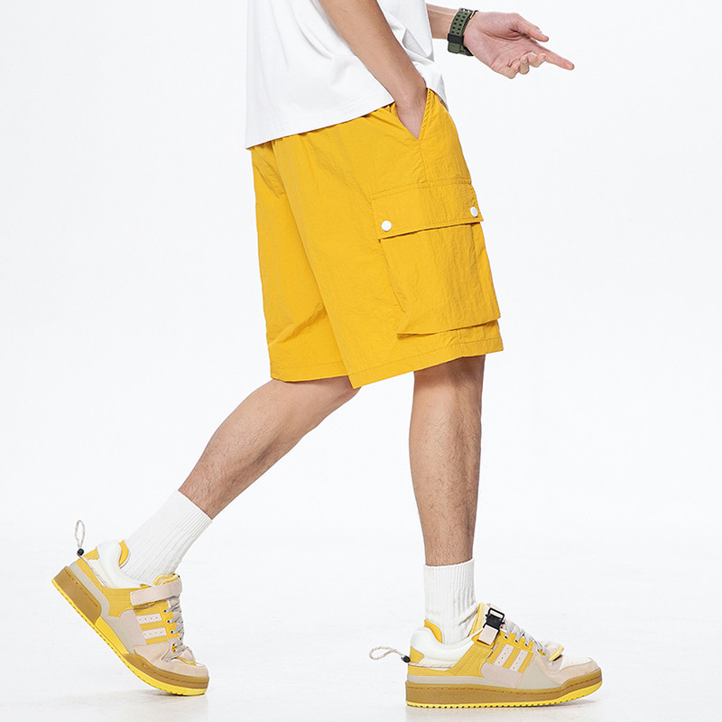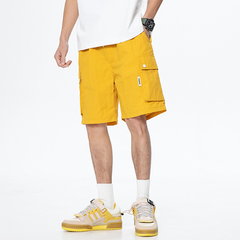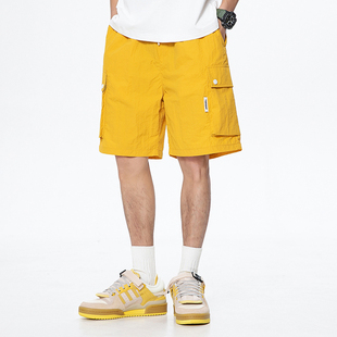 短裤 男夏季 大裤 沙滩裤 衩 宽松五分裤 工装 子2025新款 男士 冰丝黄色裤