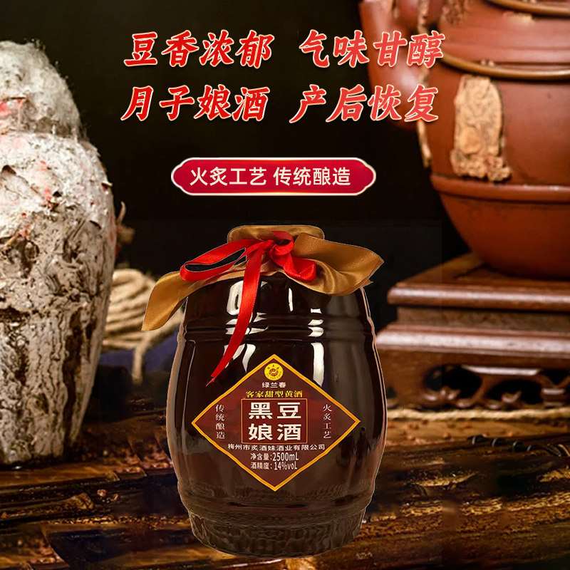 绿兰春黑豆娘酒梅州客家火炙月子酒纯粮酿造广东黄酒2500ML 坛