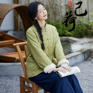 己荷原创秋冬新款 国风国潮盘扣外套加绒加厚棉袄女 立领盘扣新中式