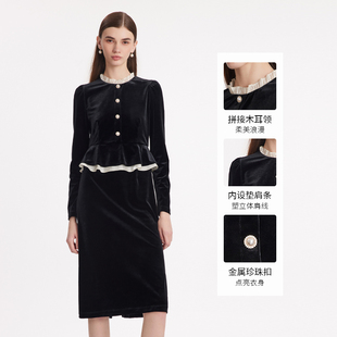 场合小黑裙 歌莉娅丝绒连衣裙女秋冬大方得体连身裙正式 舒心