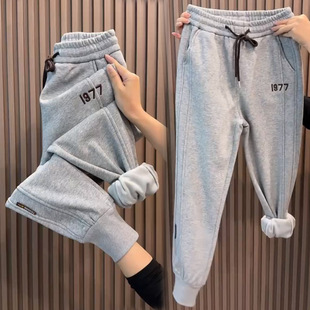女冬季 高腰宽松休闲运动裤 新款 显瘦束脚哈伦裤 时尚 加绒加厚卫裤
