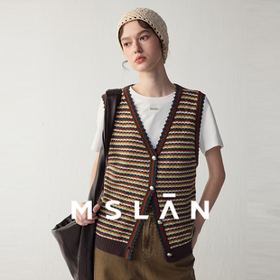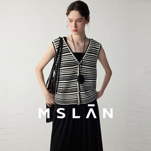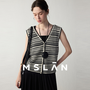 莫代尔简约撞色条纹无袖 MSLAN夏季 马夹背心MFCE2120 氧气针织