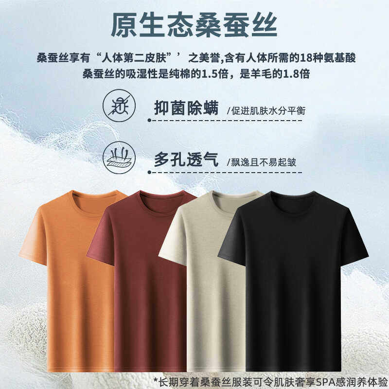纯色桑蚕丝圆领短袖 大高货139 舒适经典 简约时尚 T恤男情侣 夏季