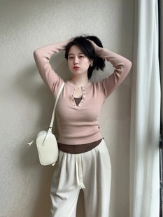 胖mm纯欲风辣妹薄款 修身 长袖 女早秋新款 假两件T恤上衣 针织衫 大码