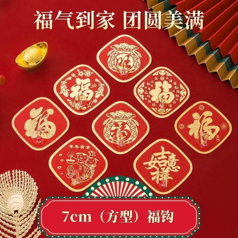 新年喜庆红色挂钩福字粘钩免打孔无痕挂钩强力承重自粘墙结婚挂钩