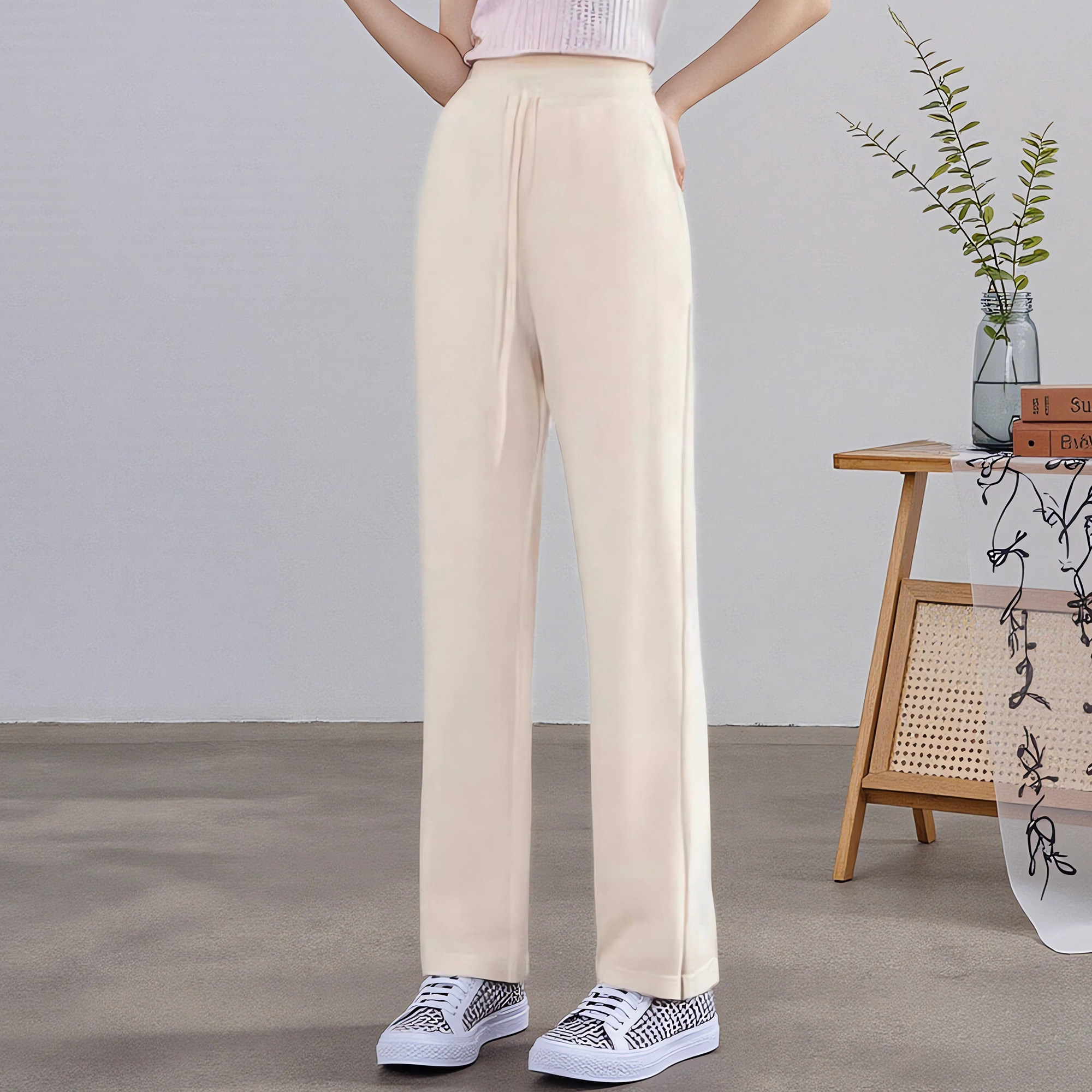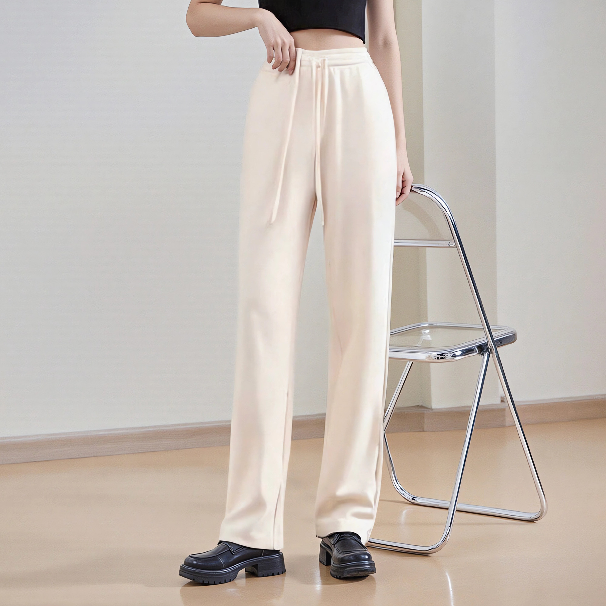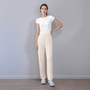 休闲直筒松紧腰毛呢加厚高腰长裤 折扣 女155 朗斯莉春秋断码 正品